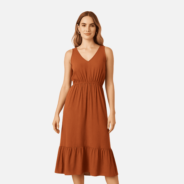 Rust Sleeveless Midi Dress