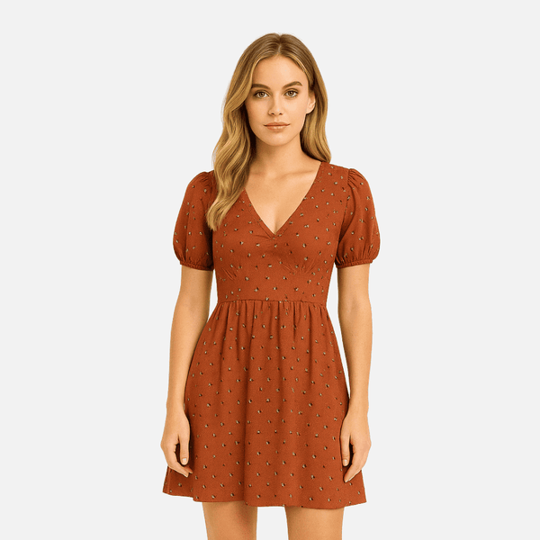 Rust V Neck Dress
